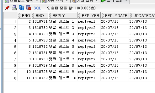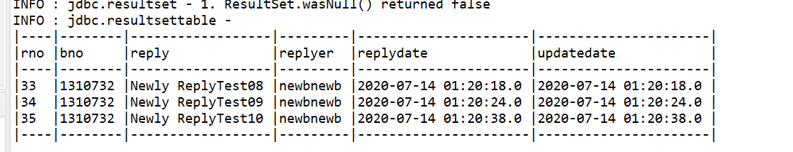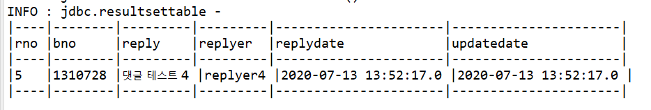 testMapper()로 ReplyMapper 타입 객체가 정상 사용 가능한지 확인