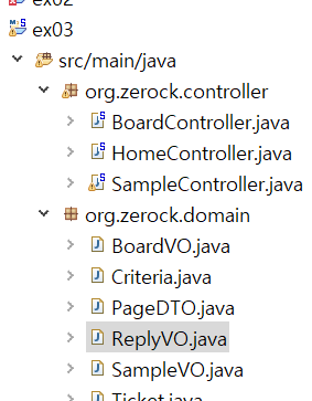 REST 처리를 위해 pom.xml에서 수정된 내용이 대부분이므로, ex03에서 사용하던 소스 코드를 복사해서 사용한다.