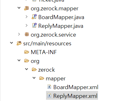 org.zerock.mapper 패키지에 ReplyMapper 인터페이스를 처리하고 XML 파일도 생성해준다.