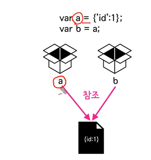 b = {'id':2}; //b가 새로운 별개의 데이터로 만들어짐