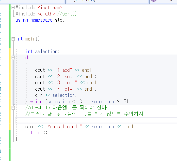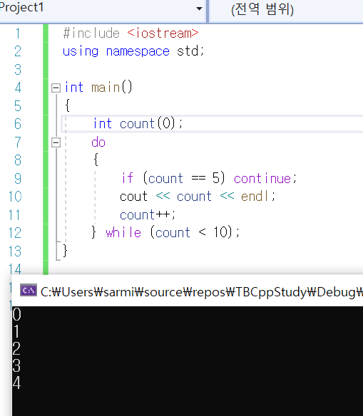 do-while문이나 while문의 경우 조건에 해당하는 변수는 반드시 외부에서 선언해주어야 한다.