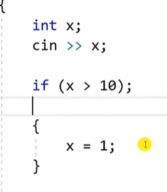 이 때 if문 다음에 ; 가 있다면 if문 조건이 어떻게 되건 그냥 if문이 끝나 버린다.