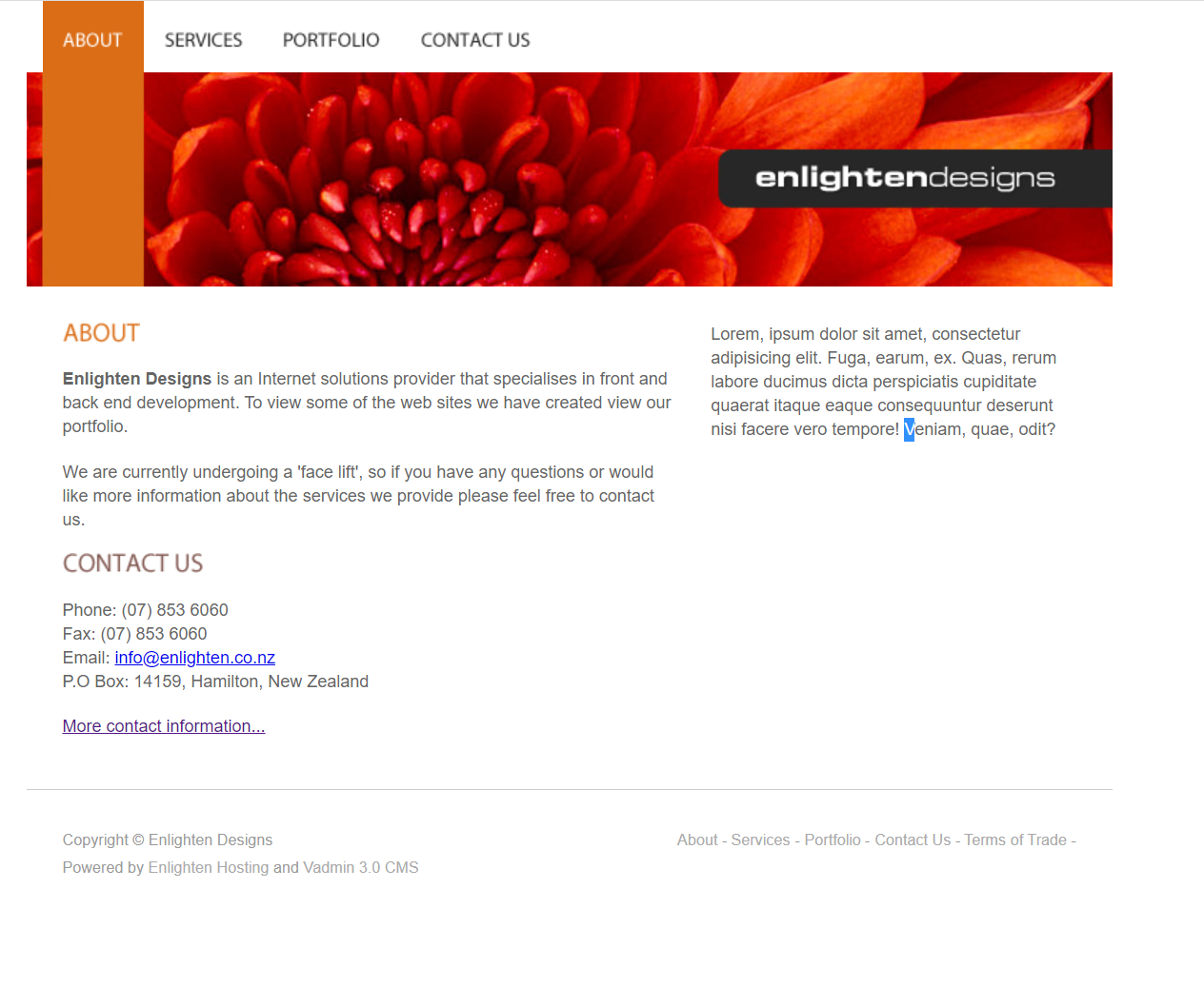 Powered by <a href="#">Enlighten Hosting</a> and <a href="#">Vadmin 3.0 CMS</a>