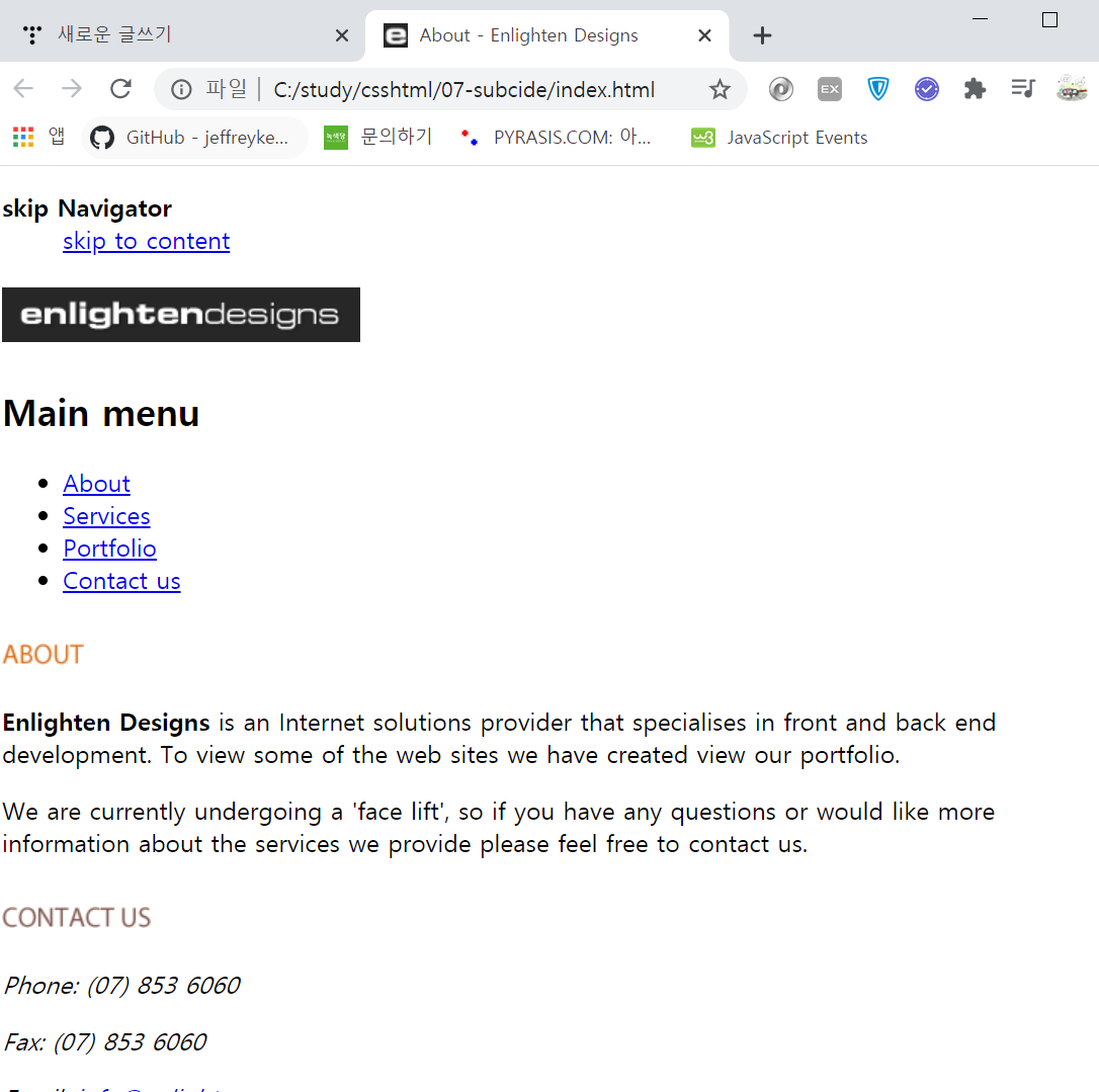 제대로 배워보는 html과 css, 그리고 웹표준 11. 웹페이지(subcide.com) 만들어보기 실습