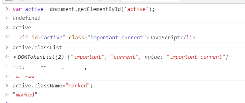 <input type="button" value="DOMTokenList" onclick="console.log(active.classList);" />