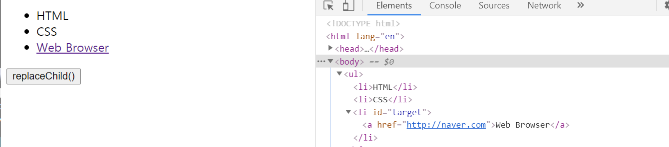 target.outerHTML = "<ol><li>JavaScript Core</li><li>BOM</li><li>DOM</li></ol>";