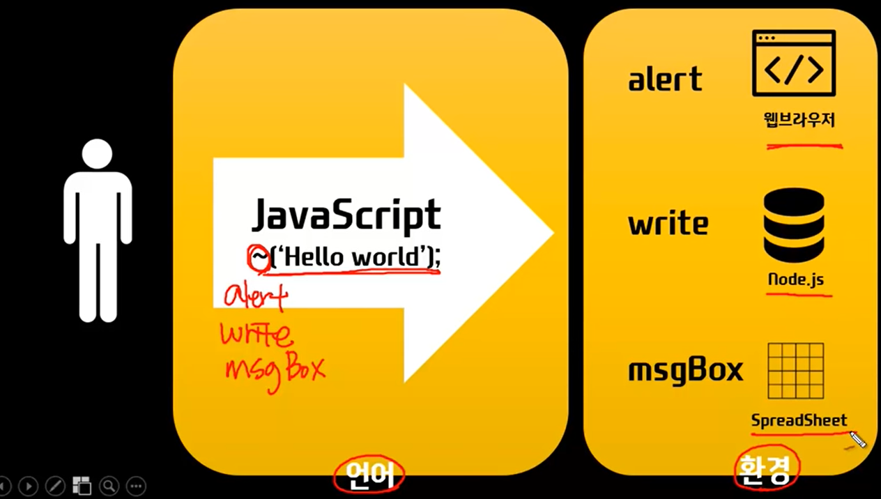 자바스크립트는 "프로그래밍"적으로 웹 브라우저를 제어하기 위한 언어.